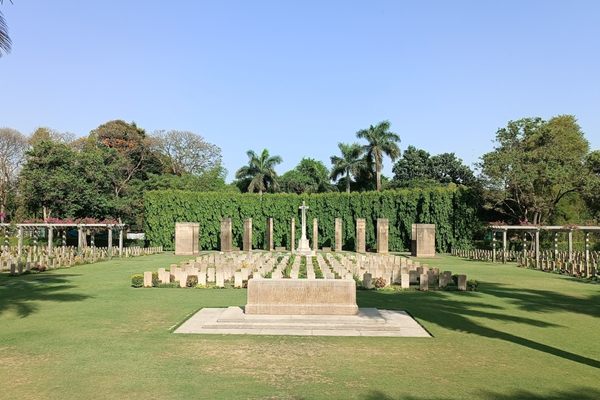 The cemetery is a solemn place, a reminder of the horror of war and that lost life is tragic. The central feature is a circular structure that houses the remains of hundreds of soldiers. Atop the mausoleum are statues representing those waiting for their return.
