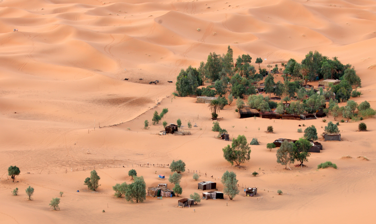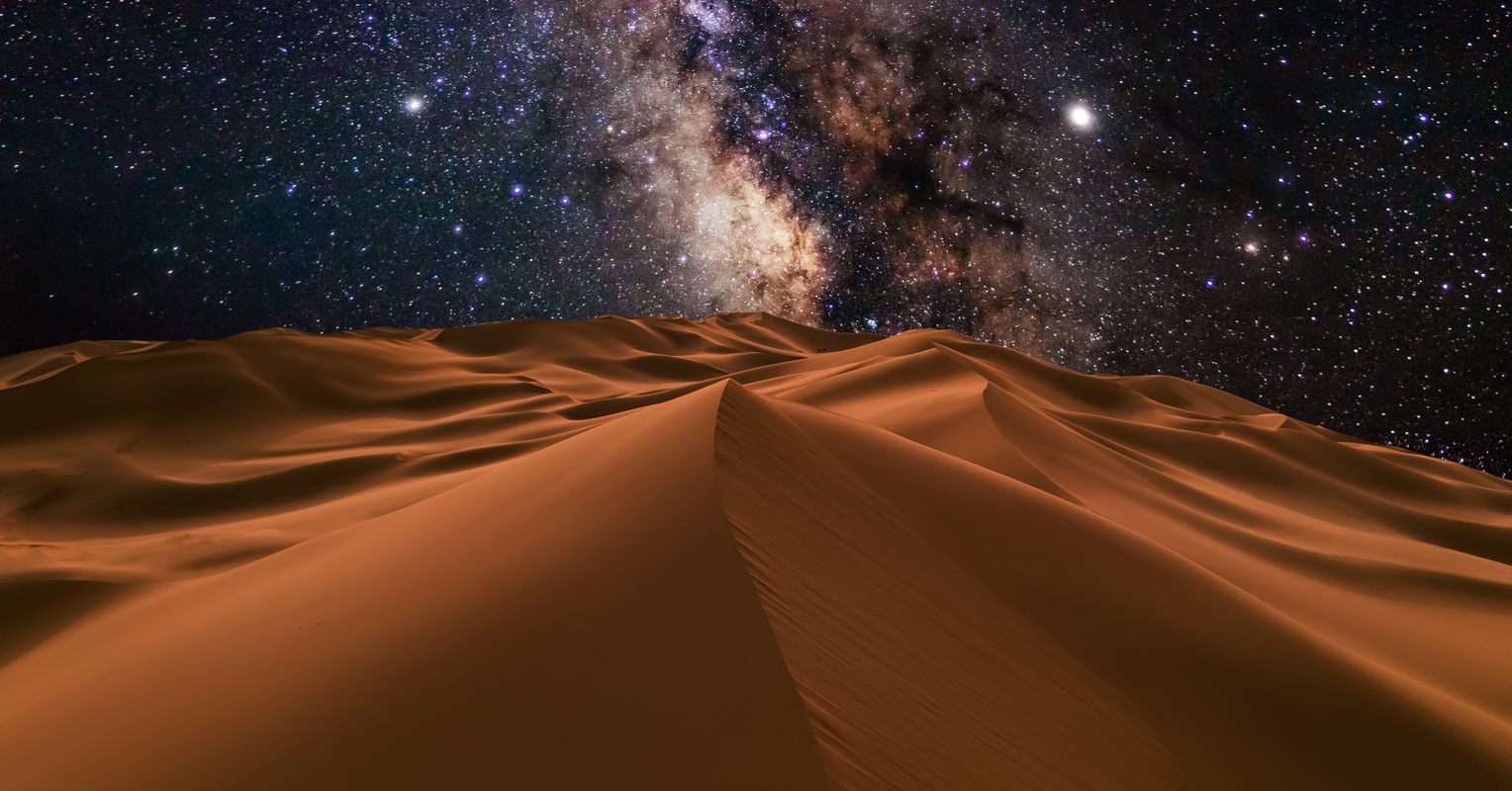 You’ll set out early this morning, driving up into the mountains, where we’ll stop for a coffee break with panoramic views. You’ll pass innumerable natural wonders, including a hot-water desert spring, often thronged by thirsty camels. Once we reach the desert, we’ll switch over to all-terrain vehicles and journey 60 miles from the nearest human settlement until we reach our campsite. We’ll set up camp, enjoy a traditional Berber dinner by the campfire, and, once the sun sets, turn our gaze to the sky. With the closest source of electricity about a two-hour drive from our camp, we’ll enjoy the glittering mosaic of stars and planets in the night sky with unparalleled lucidity. Tonight we’ll have comfortable tents to sleep in, though you’re also welcome to bring a blanket outside and drift off underneath the stars.