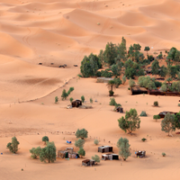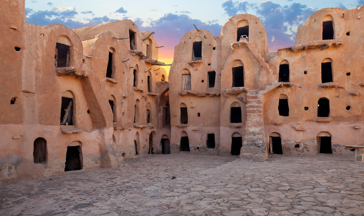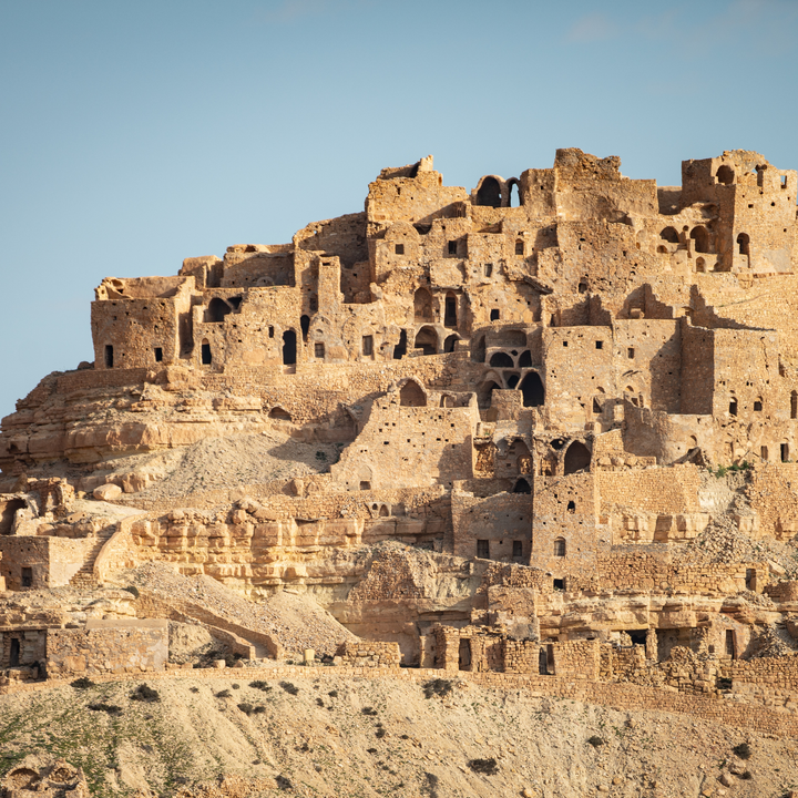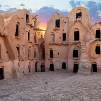 Today you’ll be exploring Tataouine from various vantage points, from its hilltop caves to its underground dugouts—and even taking an intergalactic perspective. Made famous by its Star Wars namesake, Tatooine, the town still hosts a smattering of otherworldly relics from the film set. Whether you’re a Star Wars fan or not, you’ll likely conclude this area to be one of the most visually stunning places you’ve ever seen. You’ll share a traditional Berber meal with a few new friends, and drop into a cave for a cup of tea. Then, you’ll head to Chenini, an ancient Berber village tucked into the cliffs, which served as inspiration for the name of a moon orbiting Luke Skywalker’s home planet. After a full day of exploring, you’ll return to your hotel to rest up before tomorrow’s adventure into the desert.