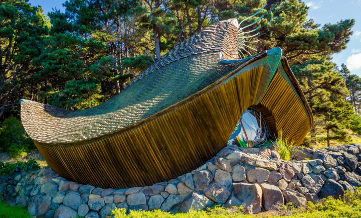 Inspired by the waves of the nearby Pacific and the natural landscape of the coast, this spiritual outpost makes visitors feel like they’ve fallen into a fairy tale. Built in 1985 from local copper and redwood by local carpenters and builders, the nondenominational chapel was modeled on the form of a murex snail shell, though others have compared it to a mushroom or a conquistador’s helmet. Robert and Betty Buffum, both residents of Sea Ranch, donated the chapel to the community in memory of Kirk Ditzler, a local Navy pilot and artist, hoping it could be a refuge for all.